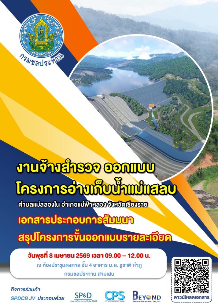 ประชาชน ผู้สนใจข้อมูลของ งานจ้างสำรวจ ออกแบบ โครงการอ่างเก็บน้ำแม่แสลบ สามารถดาวน์โหลดเอกสารได้ด้านล่าง